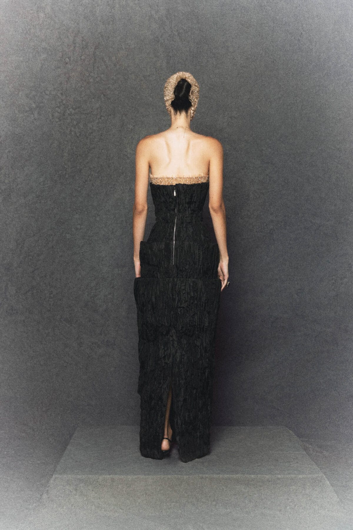 Black dress with teardrop pattern and cape - Phan Huy Official