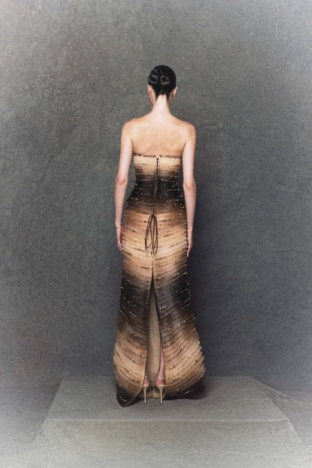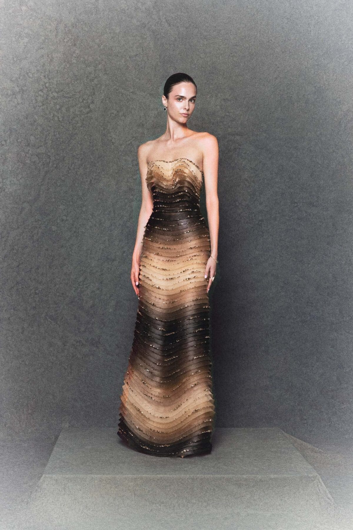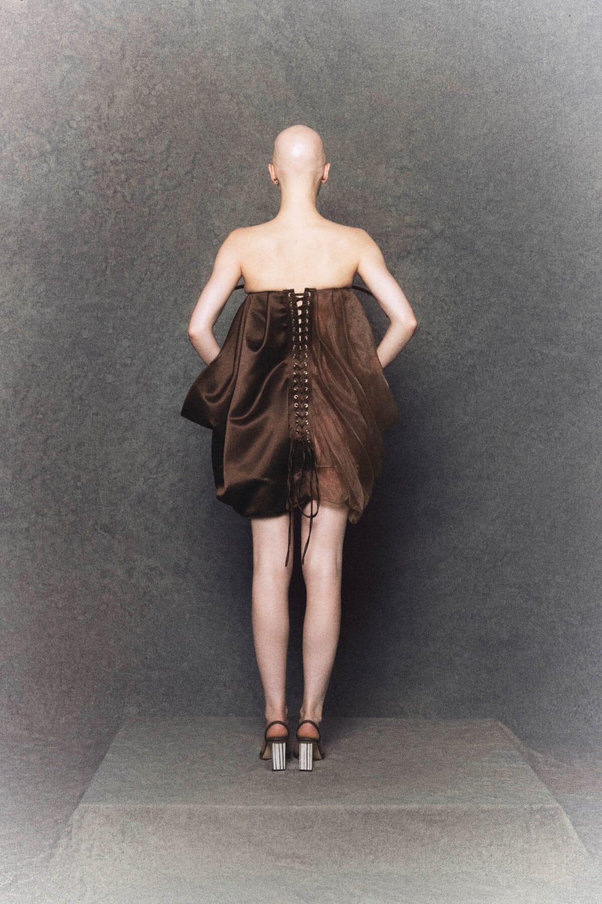 Strapless grey satin mini dress exudes modern elegance with a minimalist silhouette. The oversized detachable gray taffeta cape introduces a bold architectural contrast, combining the soft matte satin with sharp sculptural lines. Ideal for parties, evening events, or special occasions, this contemporary dress balances subtle sophistication with striking statement details.