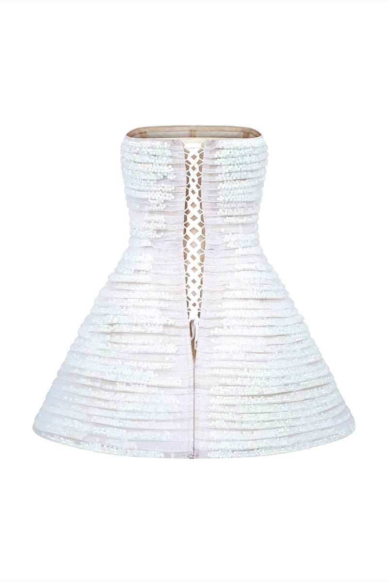 White mini tulle dress with metal beads