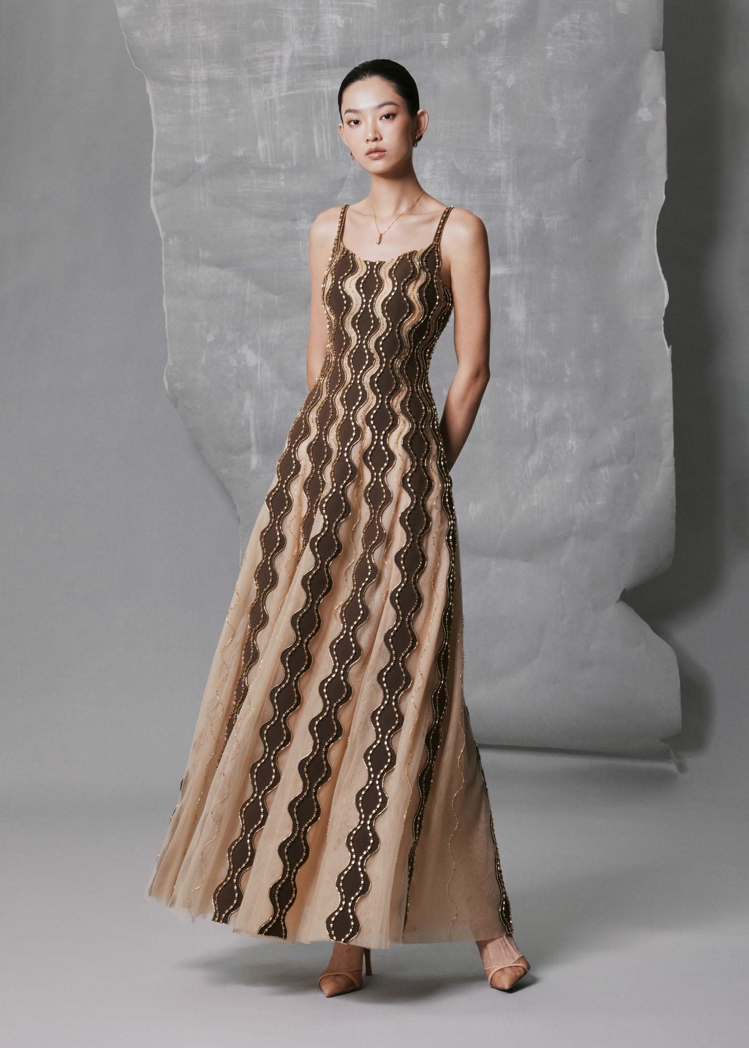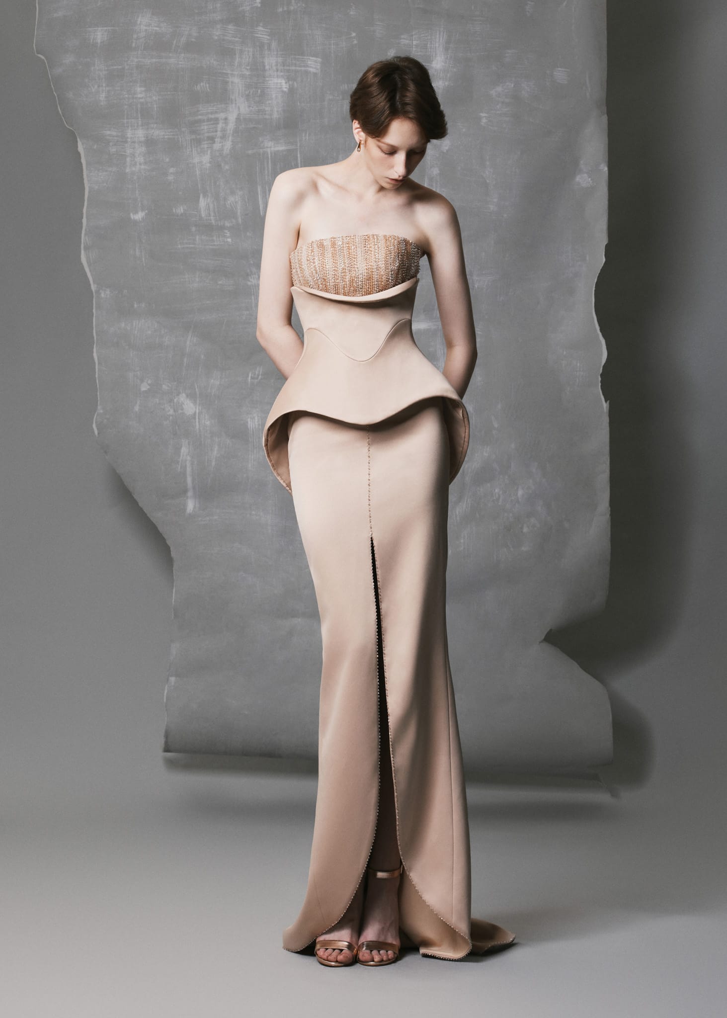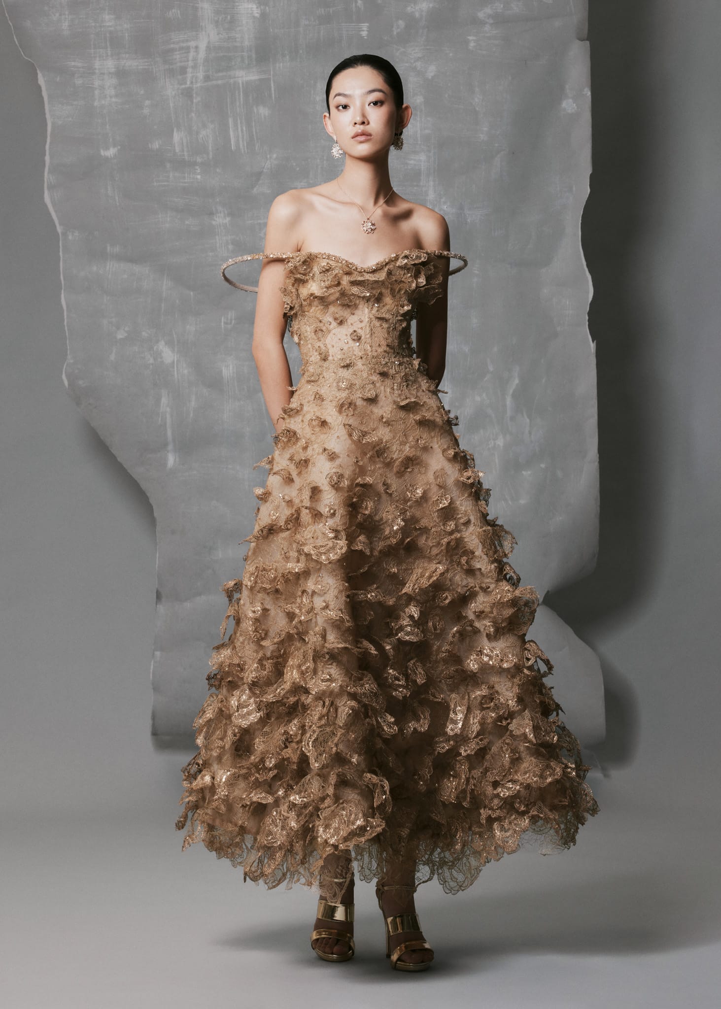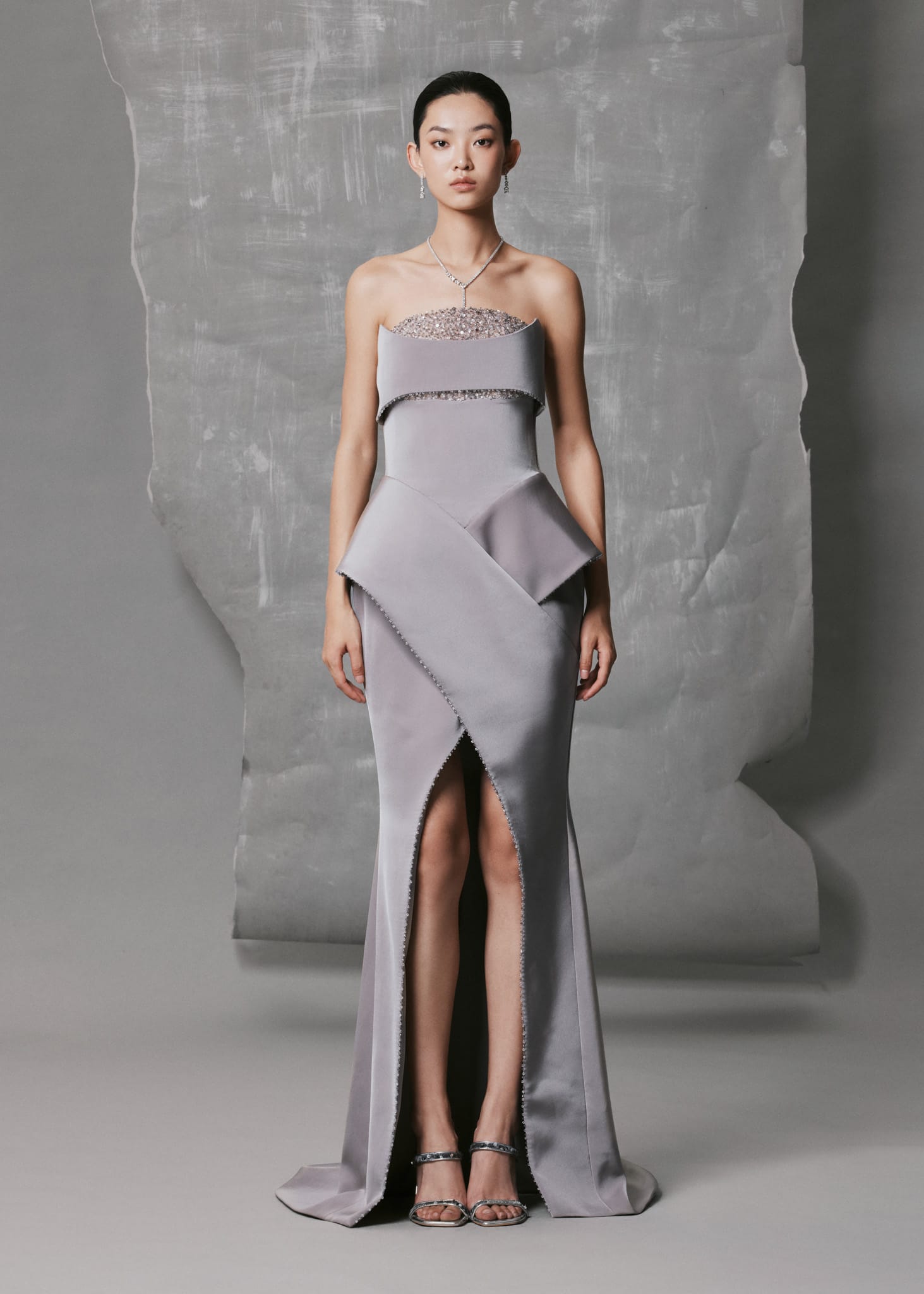 Phan Huy’s Spring-Summer 2026 collection celebrates refined craftsmanship and contemporary tailoring, reflecting the timeless elegance of modern women. Each design embodies the brand’s artisanal spirit through signature details – dewdrop motifs crafted from horsehair braid and adorned with crystals, intricate 3D laser-cut patterns, and sleek silhouettes defined by precise dart lines and a perfectly structured inner form. The collection radiates sophistication and confidence, capturing the luminous charm of summer celebrations and effortless modern grace.