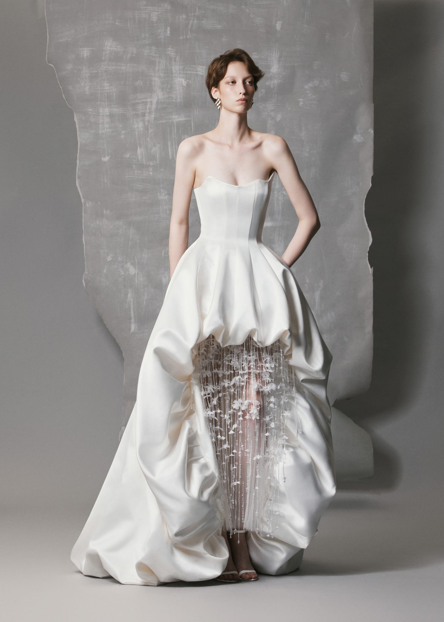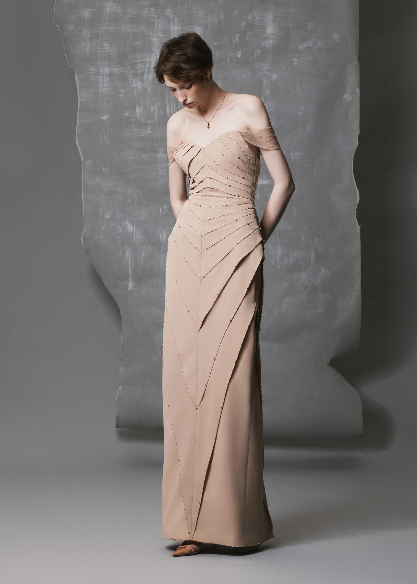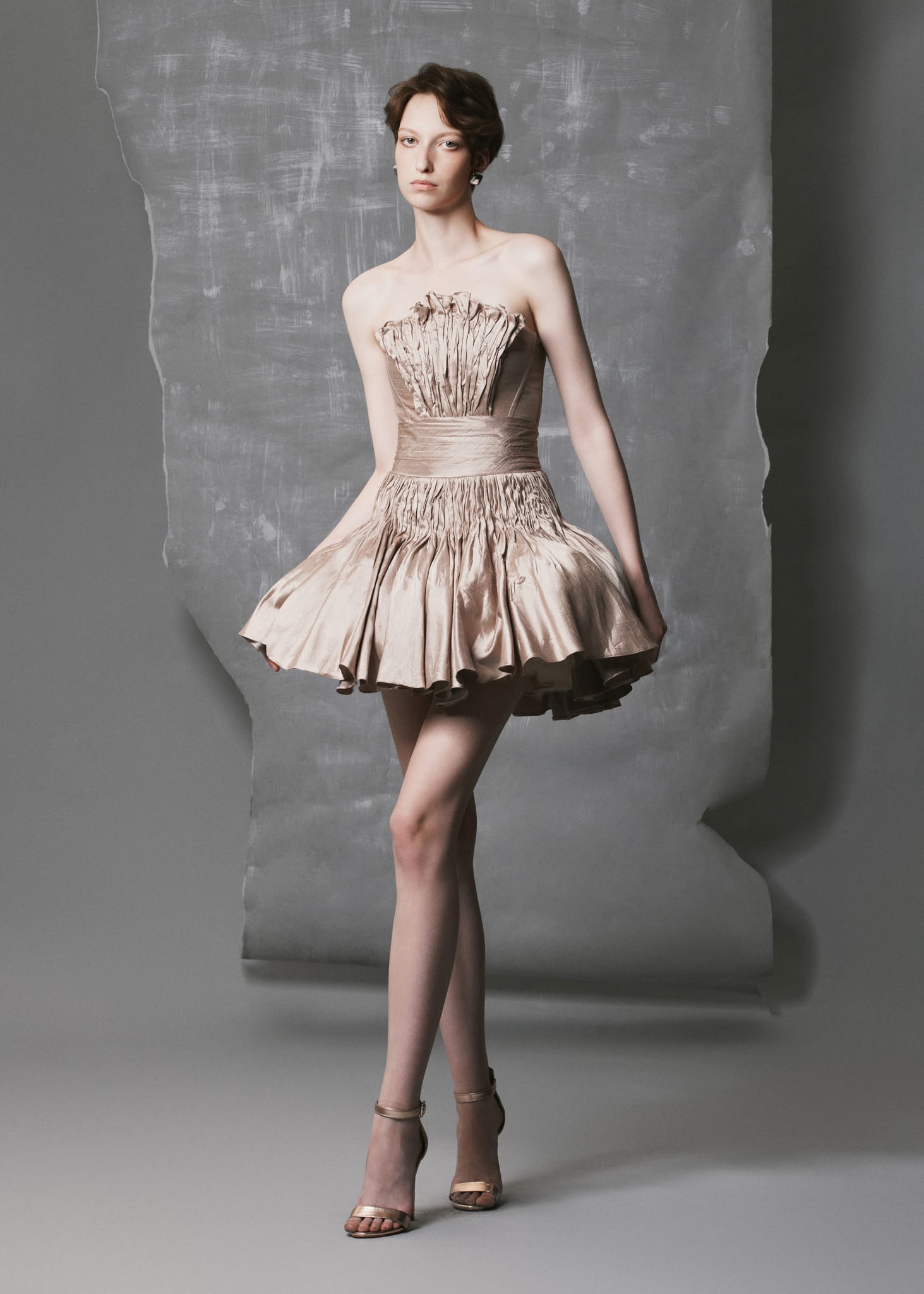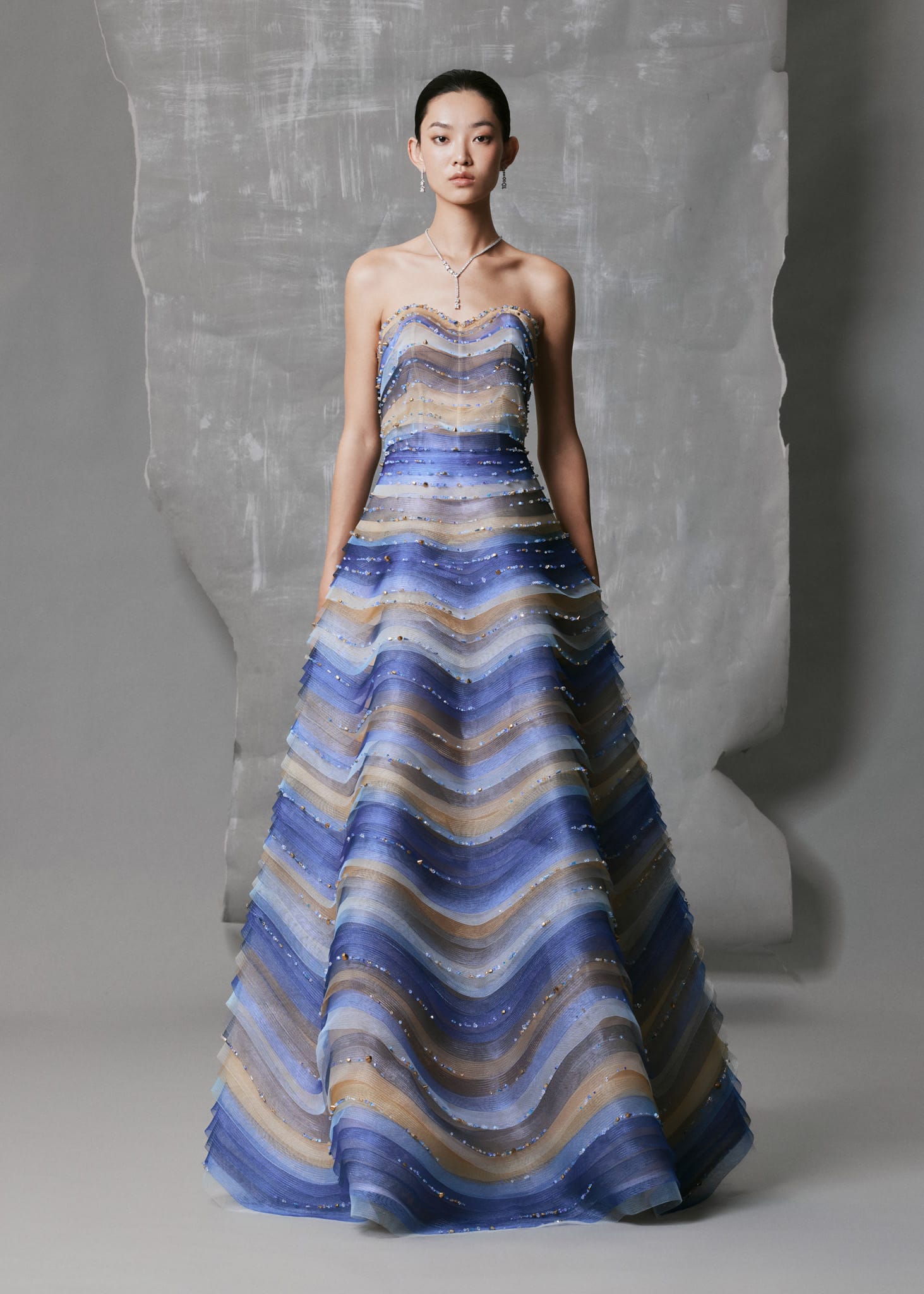 Phan Huy’s Spring-Summer 2026 collection celebrates refined craftsmanship and contemporary tailoring, reflecting the timeless elegance of modern women. Each design embodies the brand’s artisanal spirit through signature details – dewdrop motifs crafted from horsehair braid and adorned with crystals, intricate 3D laser-cut patterns, and sleek silhouettes defined by precise dart lines and a perfectly structured inner form. The collection radiates sophistication and confidence, capturing the luminous charm of summer celebrations and effortless modern grace.